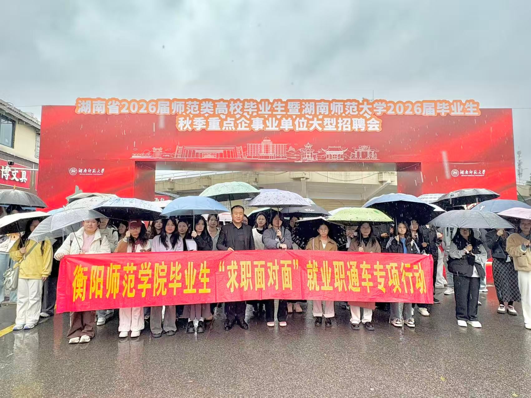 为贯彻落实党中央、国务院关于做好高校毕业生就业工作的决策部署,深化校企对接与交流合作,紧密结合当前就业市场用人需求。11月8日,我校再度开展“求职面对面”就业直通车专项活动,由物理与电子工程学院党总支副书记谢荣华带队,率东、西校区共计120余名毕业生赴长沙参加全国教育行业招聘会暨湖南省2026届师范类高校毕业生秋季重点企事业单位大型招聘会、全国装备制造行业招聘会暨湖南大学2026届毕业生供需洽谈会。